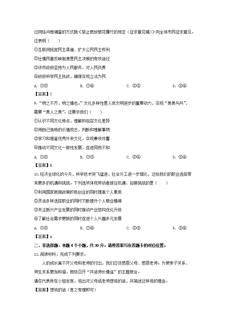 【文档名称】 2020年内蒙古巴彦淖尔中考政治真题及答案(Word版).doc