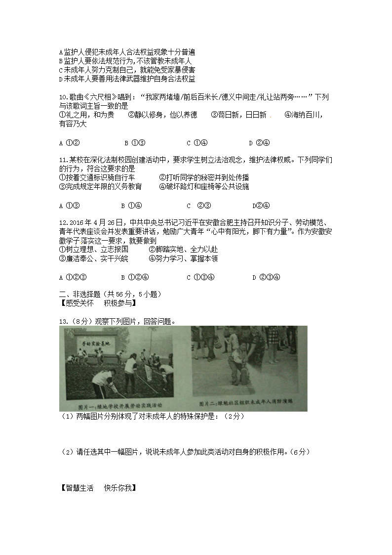 【文档名称】 2016年安徽马鞍山中考政治真题及答案(Word版).doc