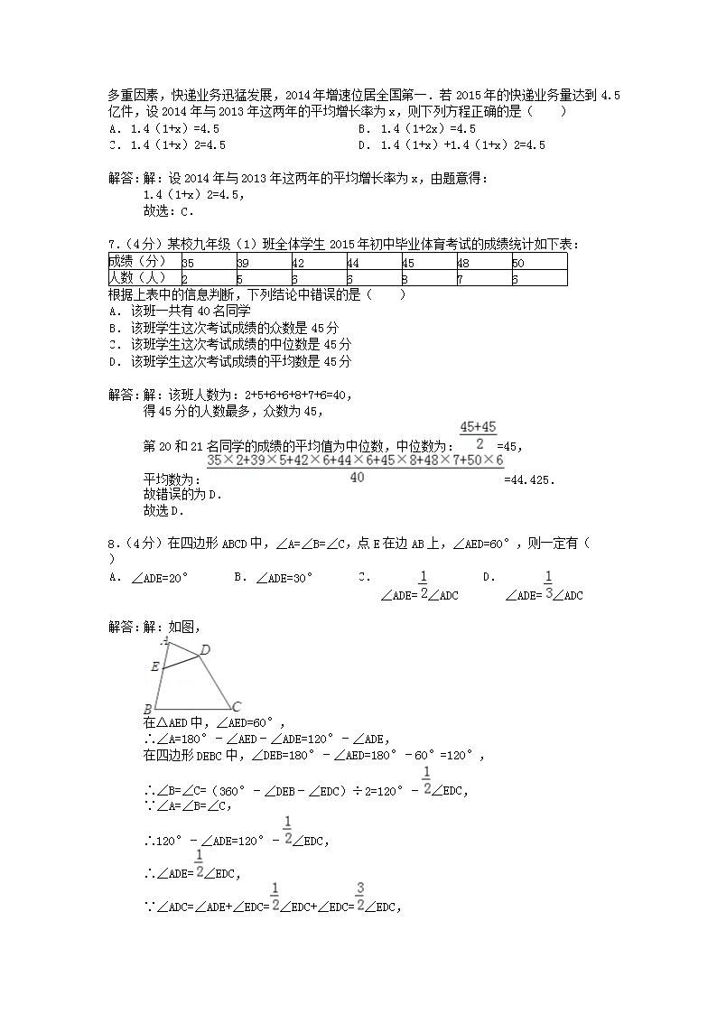 【文档名称】 2015年安徽马鞍山中考数学真题及答案(Word版).doc