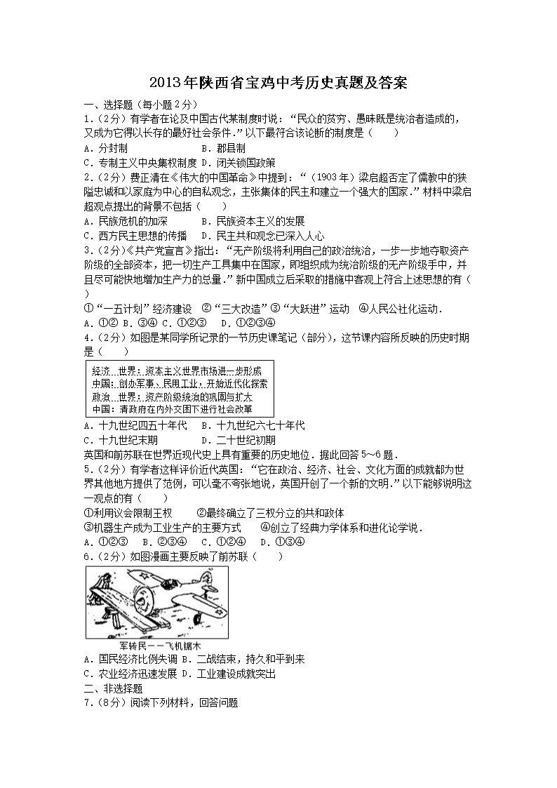 【文档名称】 2013年陕西省宝鸡中考历史真题及答案(Word版).doc