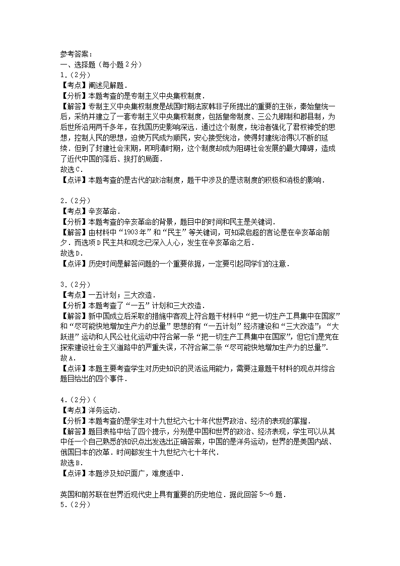 【文档名称】 2013年陕西省咸阳中考历史真题及答案(Word版).doc