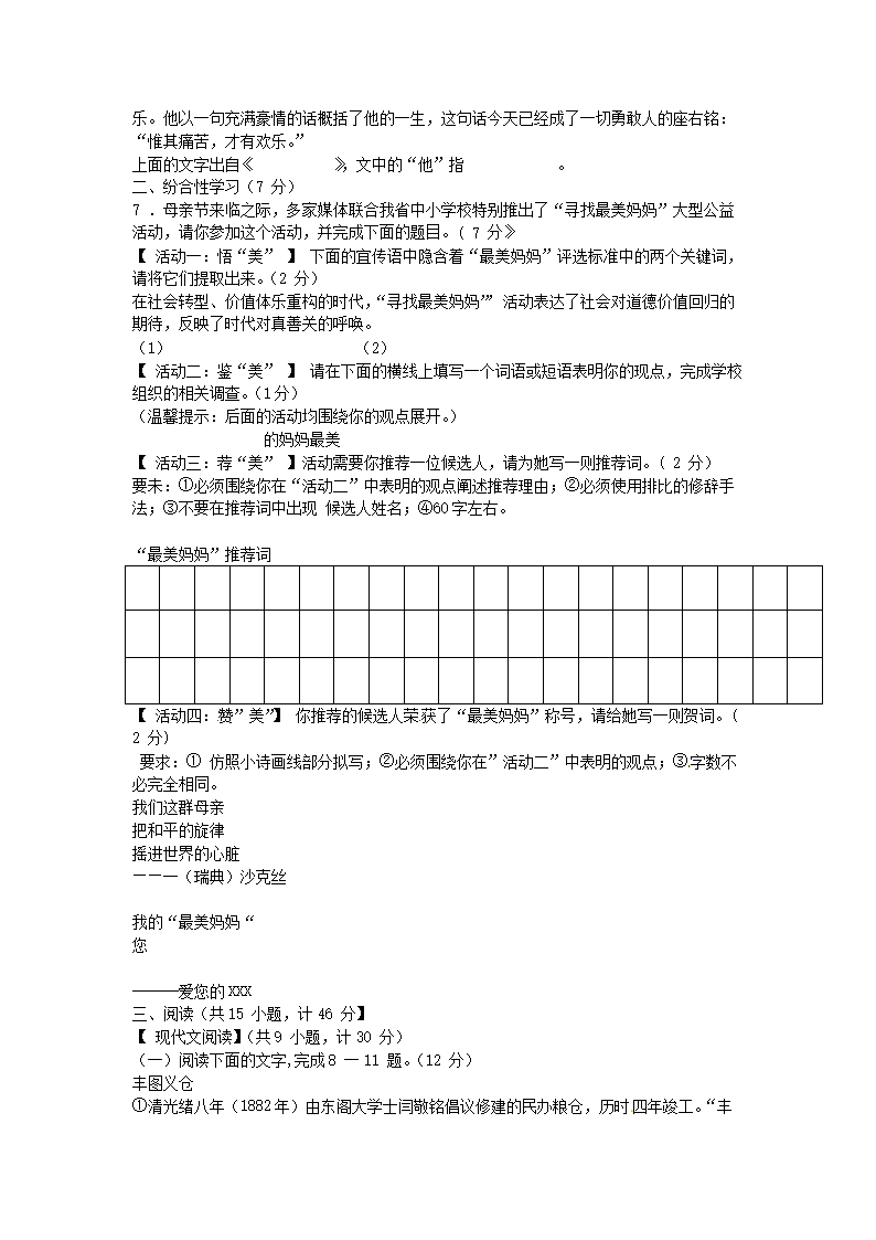 【文档名称】 2013年陕西省西安中考语文真题及答案(Word版).doc