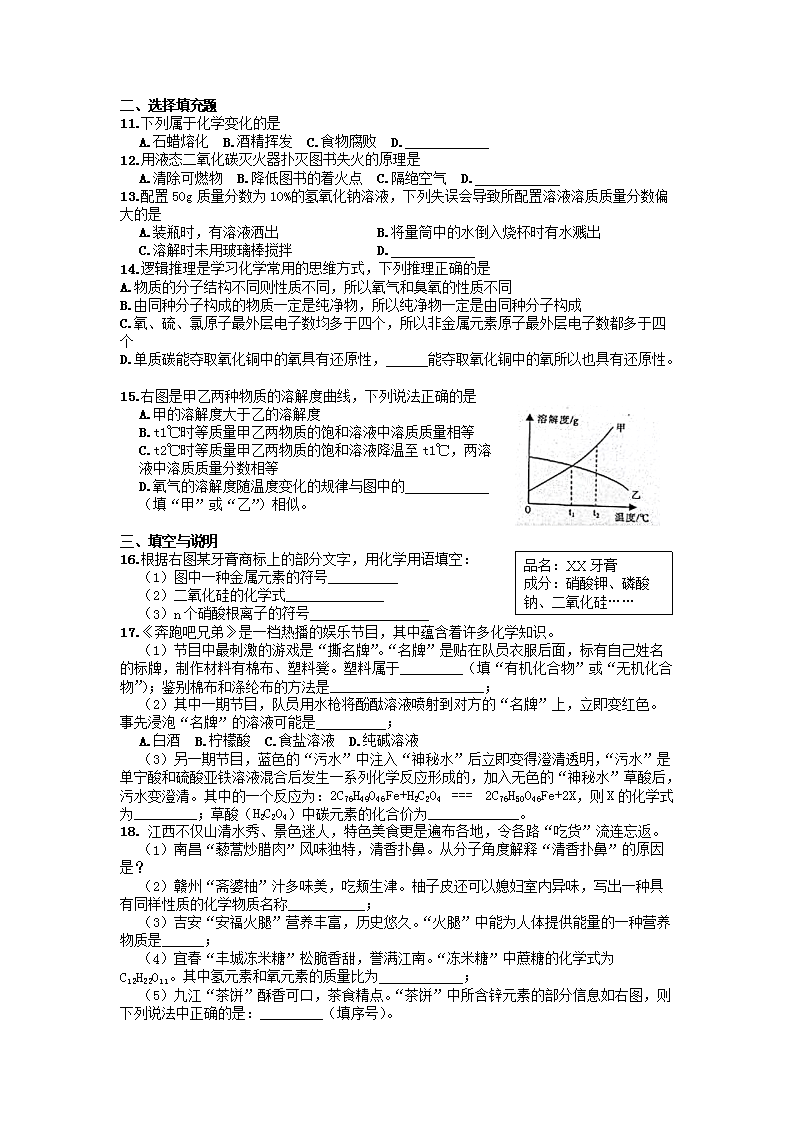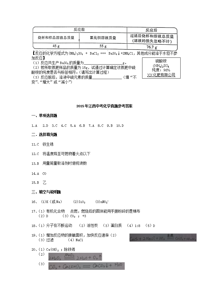 【文档名称】 2015年江西中考化学真题及答案(Word版).doc