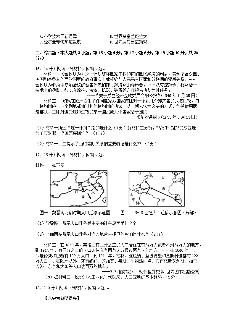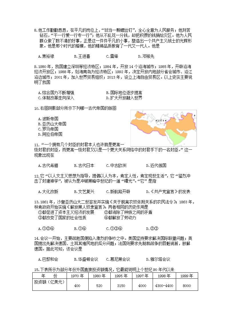 【文档名称】 2015年江西鹰潭中考历史真题及答案(Word版).doc