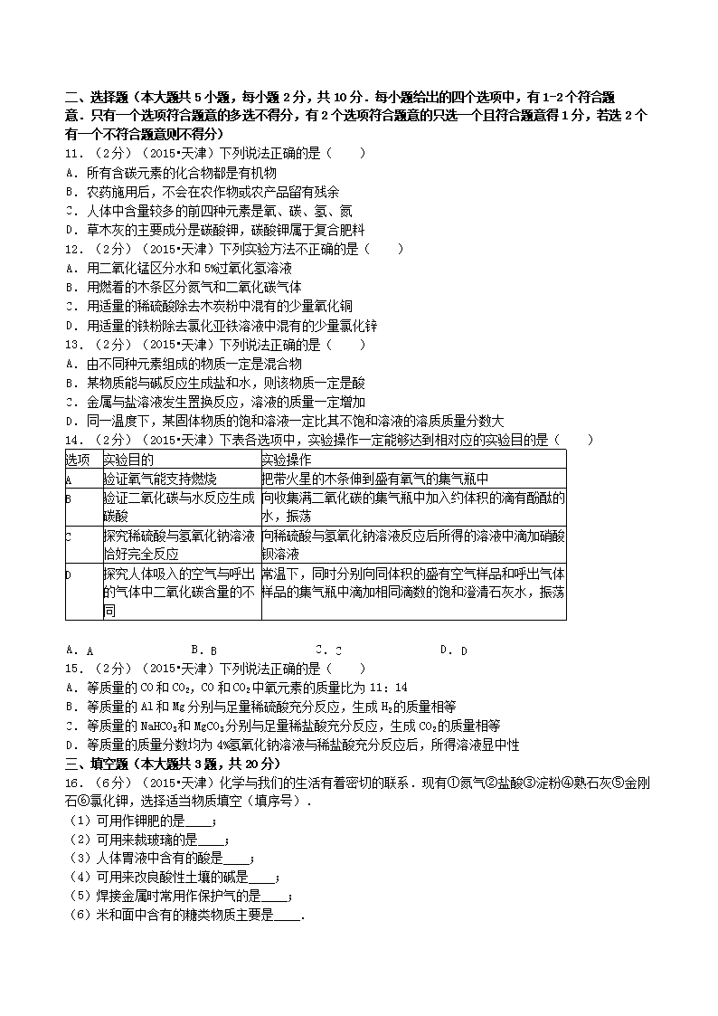 【文档预览】 无忧考网整理发布2015天津红桥中考化学真题及答案(Word版),前五页预览如下: