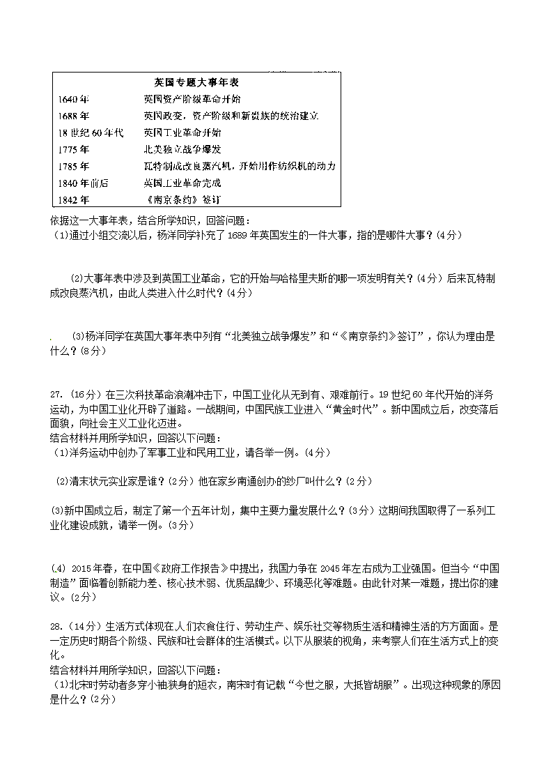 【文档名称】 2015天津红桥中考历史真题及答案(Word版).doc