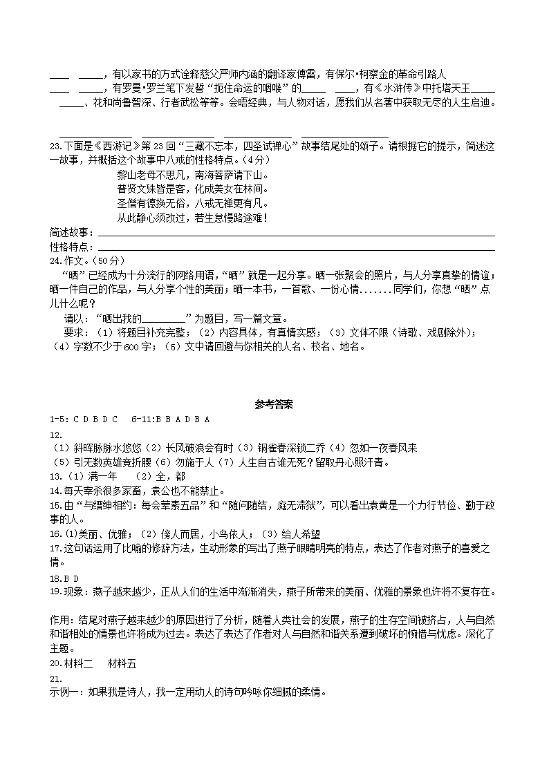 【文档预览】 无忧考网整理发布2015天津红桥中考语文真题及答案(Word版),前五页预览如下: