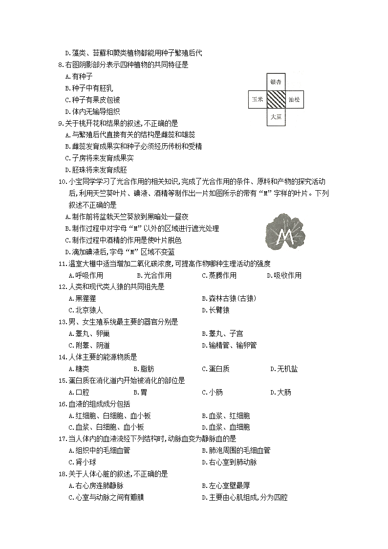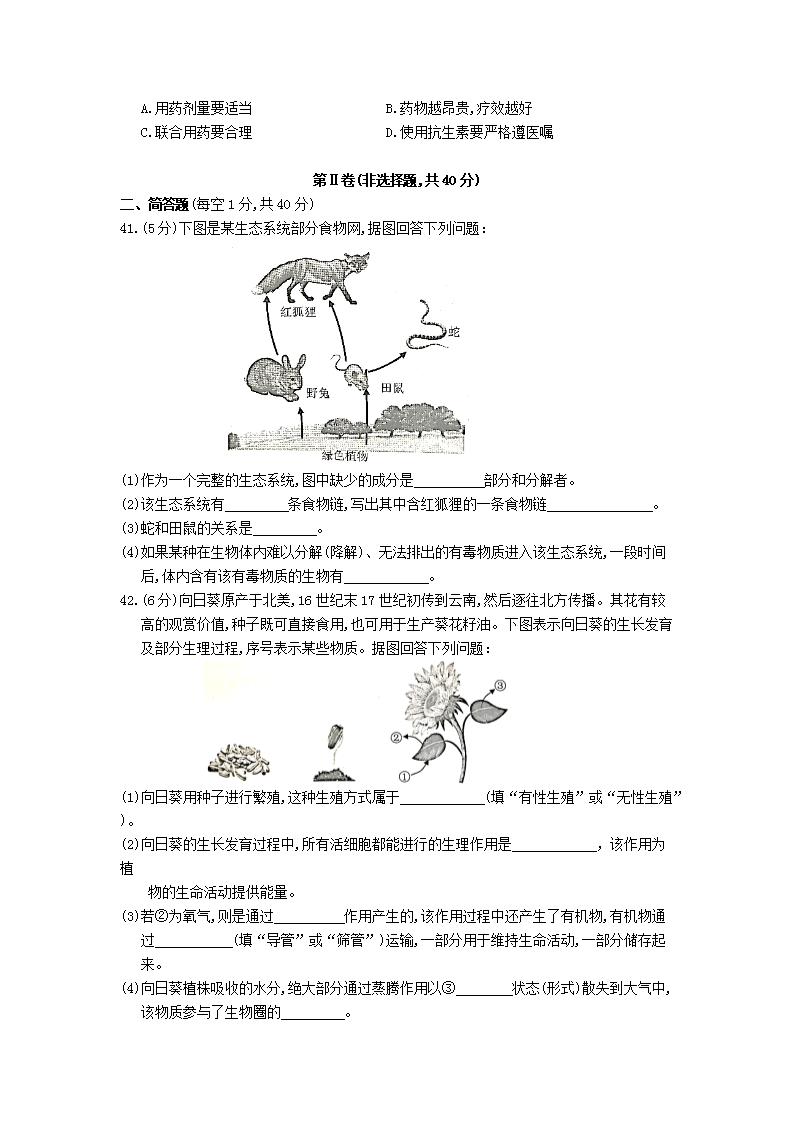 【文档名称】 2020云南保山中考生物真题及答案(Word版).doc