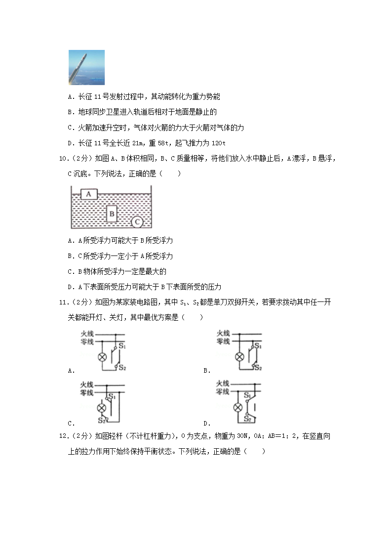 【文档名称】 2019内蒙古鄂尔多斯中考物理真题及答案(Word版).doc