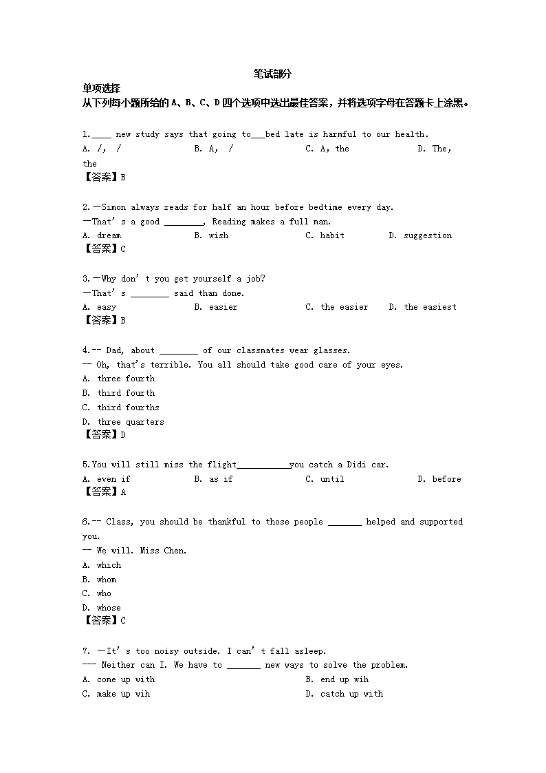 【文档名称】 2019年内蒙古呼伦贝尔中考英语真题及答案(Word版).doc