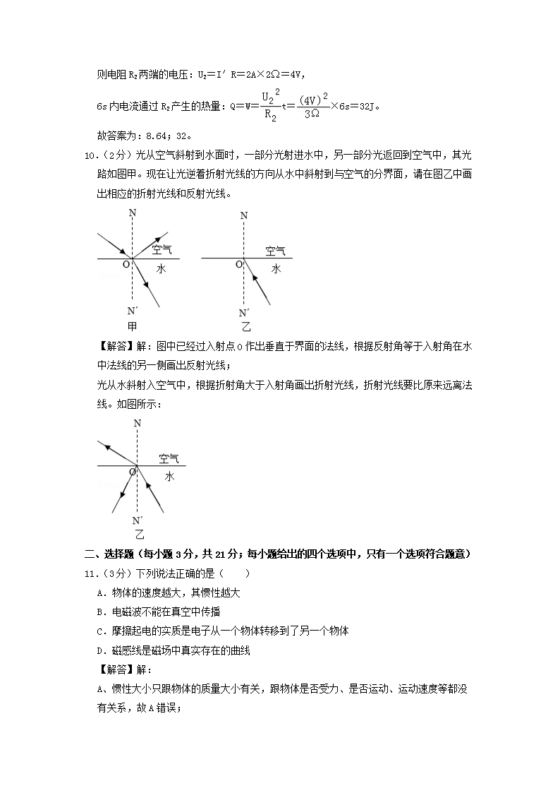 【文档名称】 2019年安徽滁州中考物理真题及答案(Word版).doc