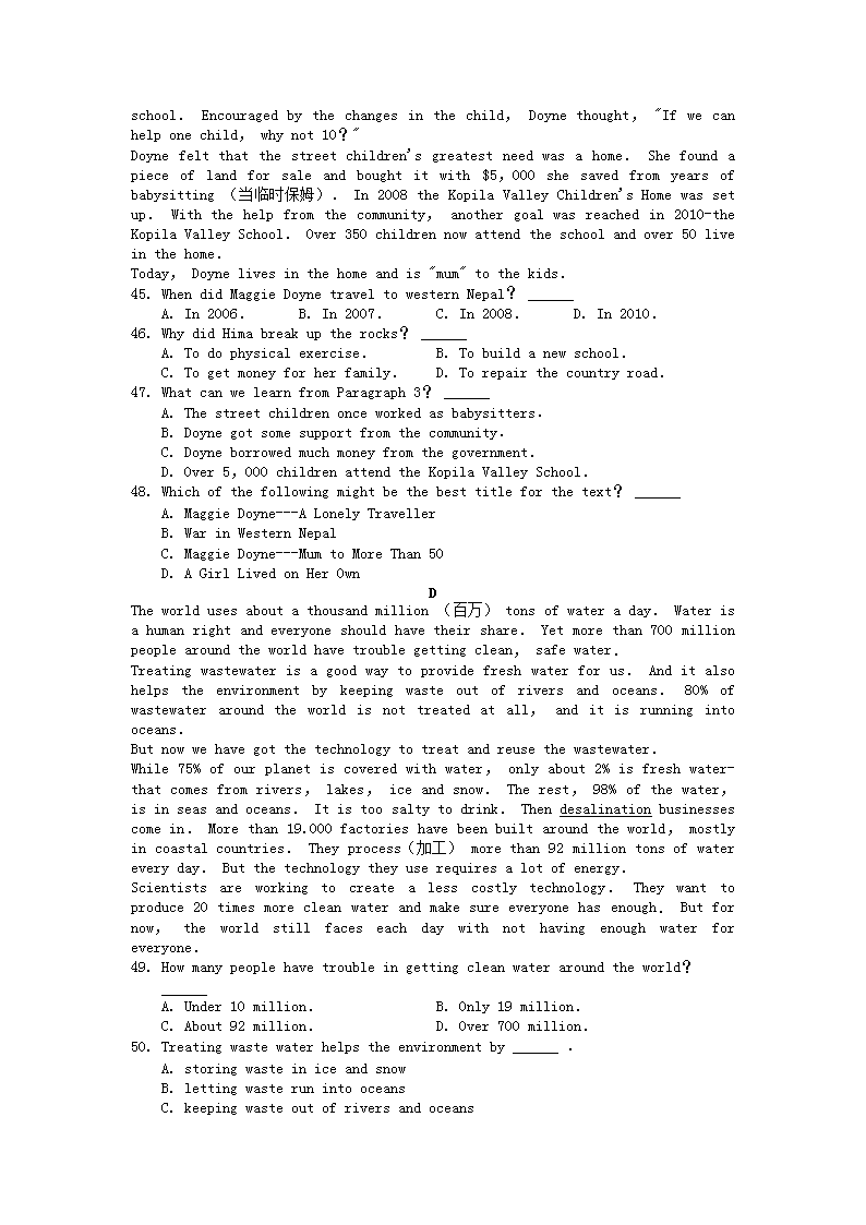 【文档预览】 无忧考网整理发布2019年安徽滁州中考英语真题及答案(Word版),前五页预览如下: