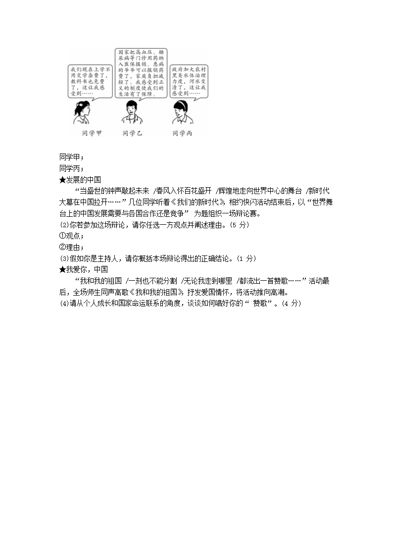 【文档名称】 2019年安徽滁州中考政治真题及答案(Word版).doc