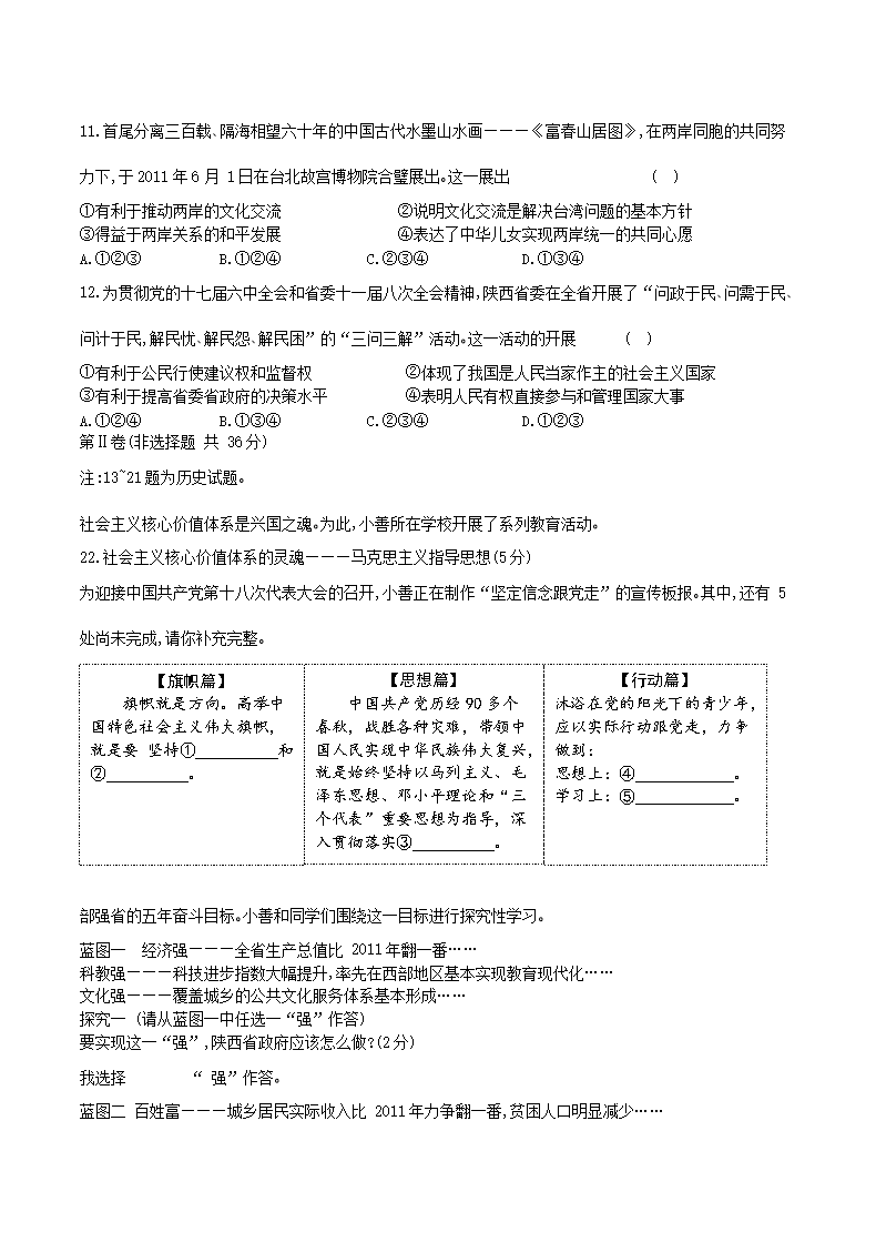 【文档名称】 2012年陕西省西安中考政治真题及答案(Word版).doc