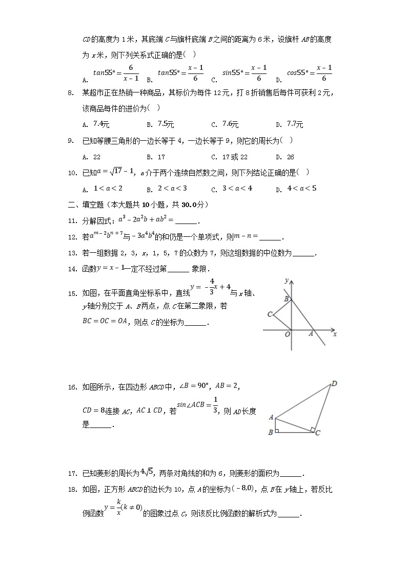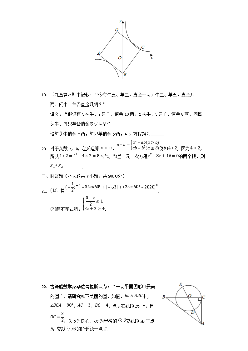【文档名称】 2020年贵州黔南州中考数学真题及答案(Word版).doc