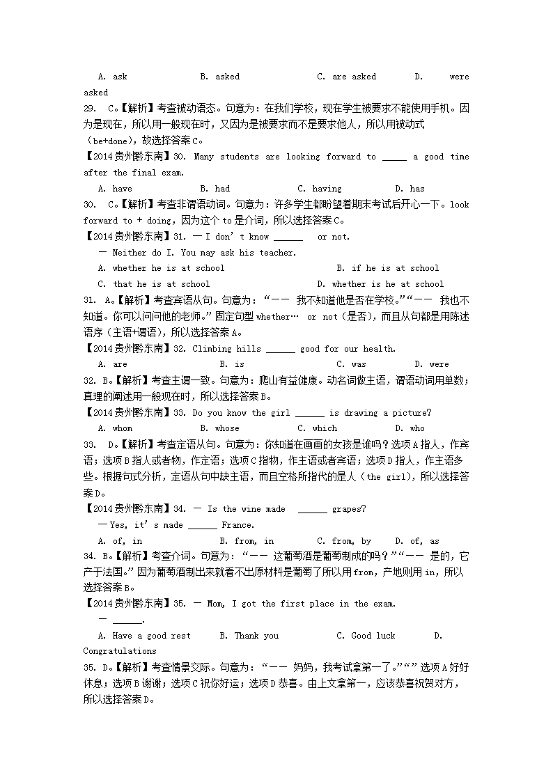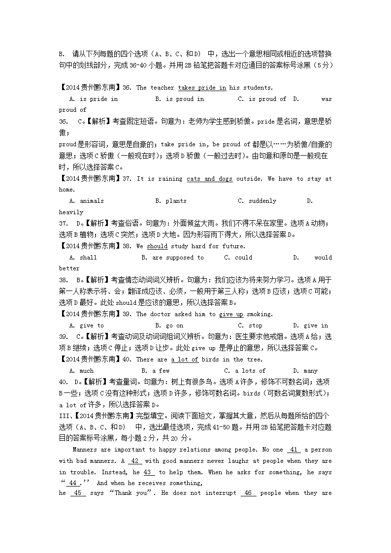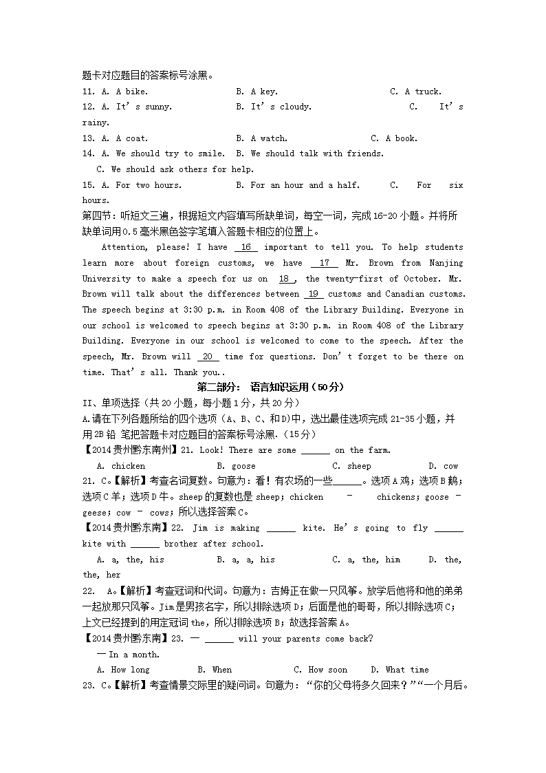 【文档名称】 2014年贵州黔东南州中考英语真题及答案(Word版).doc