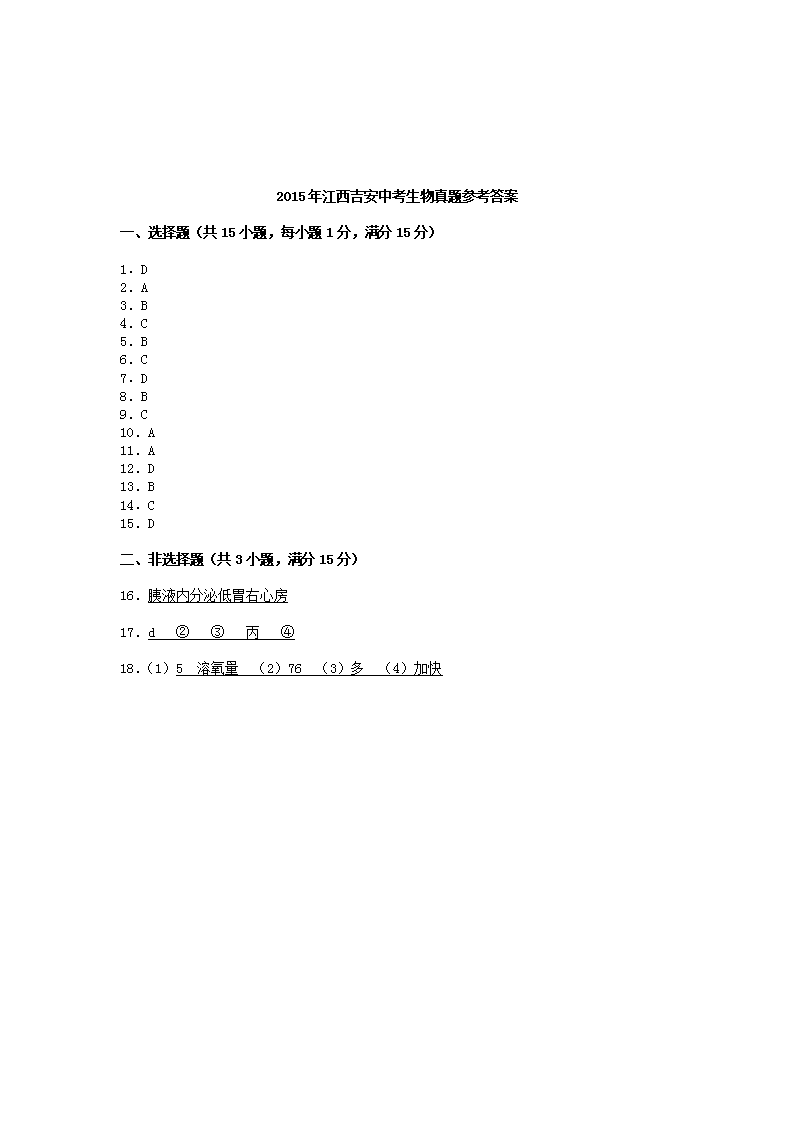 【文档名称】 2015年江西吉安中考生物真题及答案(Word版).doc