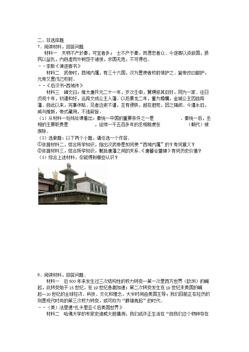 【文档名称】 2012年陕西省宝鸡中考历史真题及答案(Word版).doc