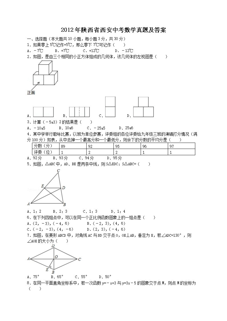 【文档名称】 2012年陕西省西安中考数学真题及答案(Word版).doc