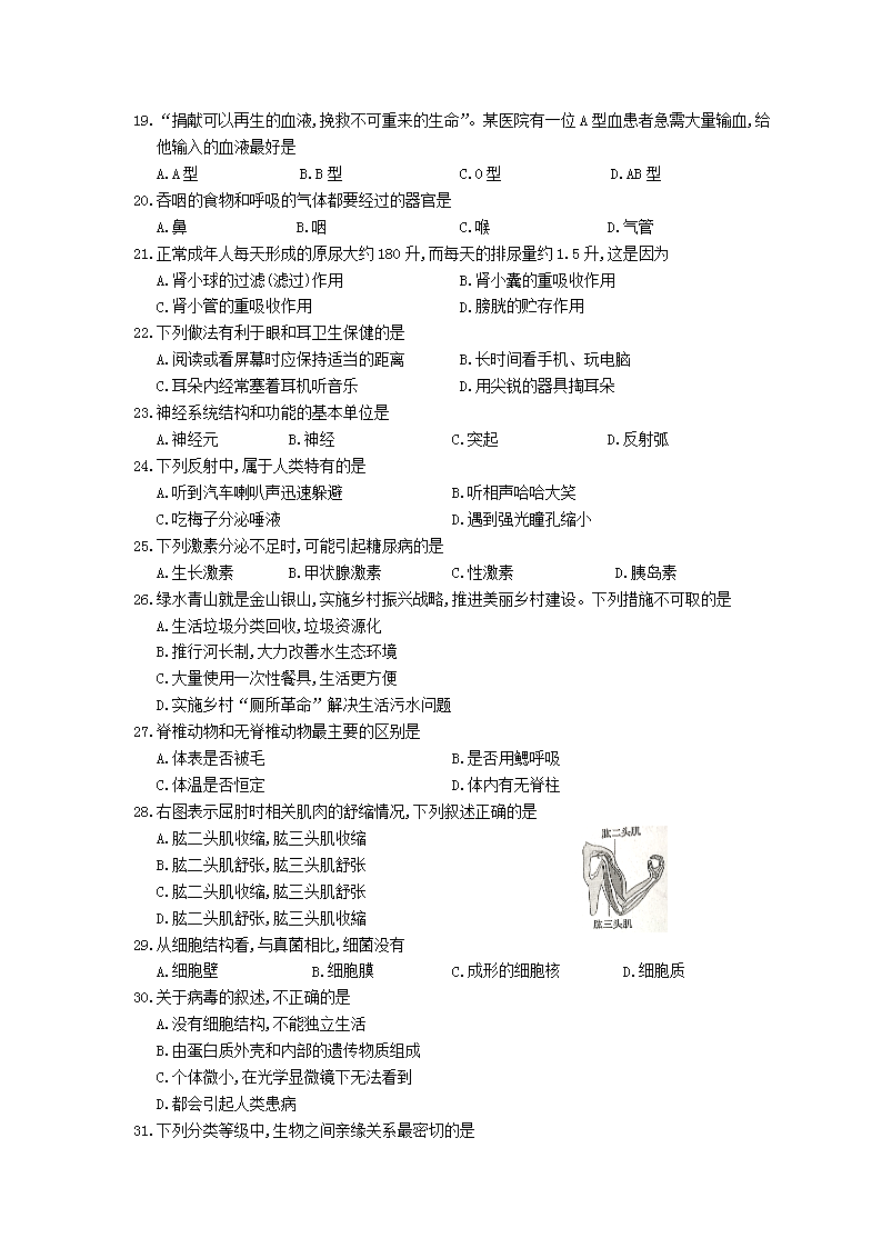 【文档名称】 2020云南楚雄中考生物真题及答案(Word版).doc