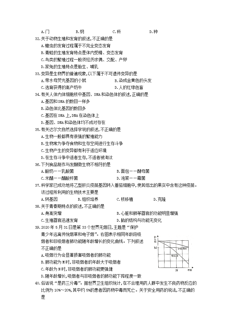 【文档预览】 无忧考网整理发布2020云南楚雄中考生物真题及答案(Word版),前五页预览如下: