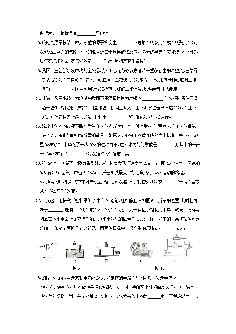 【文档名称】 2020云南德宏中考物理真题及答案(Word版).doc