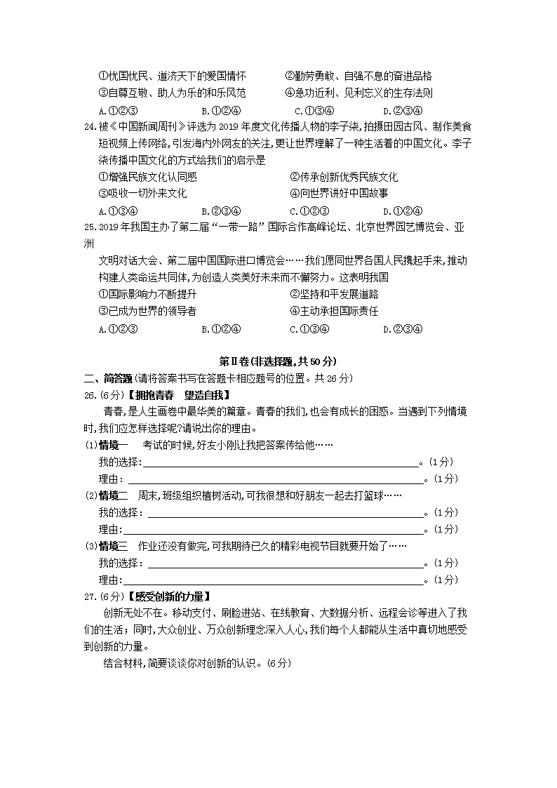 【文档名称】 2020云南德宏中考道德与法治真题及答案(Word版).doc