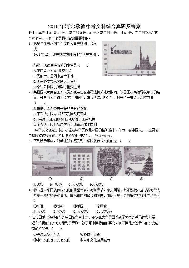 【文档名称】 2015年河北承德中考文科综合真题及答案(Word版).doc