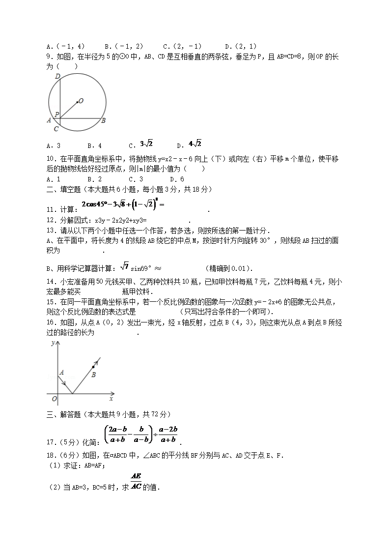 【文档名称】 2012年陕西省榆林中考数学真题及答案(Word版).doc