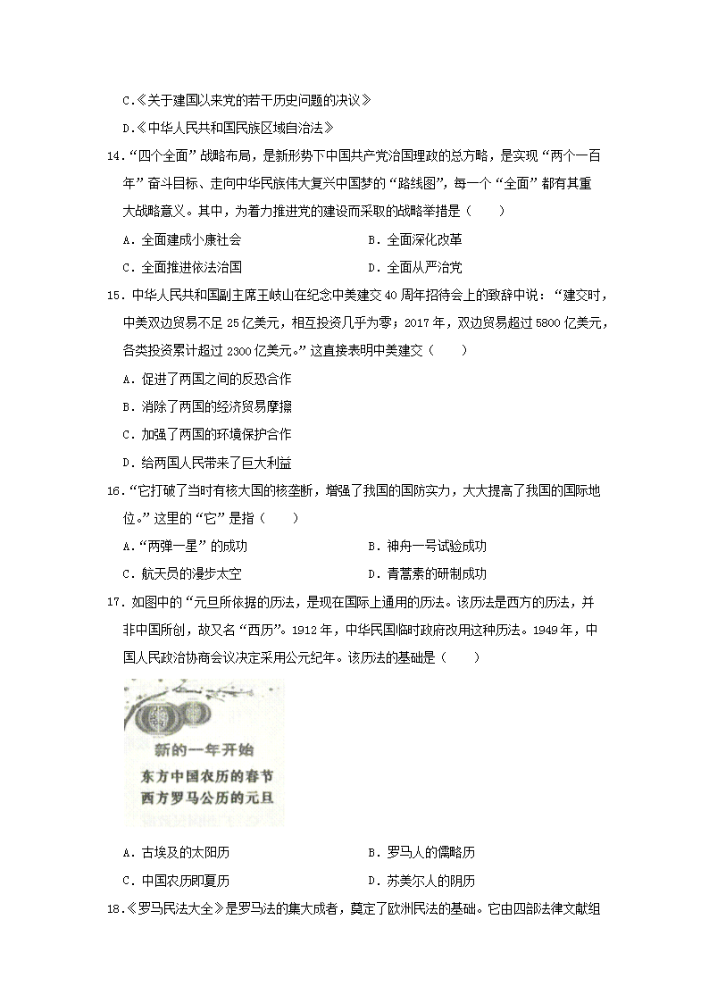 【文档名称】 2019山东省临沂市中考历史真题及答案(Word版).doc
