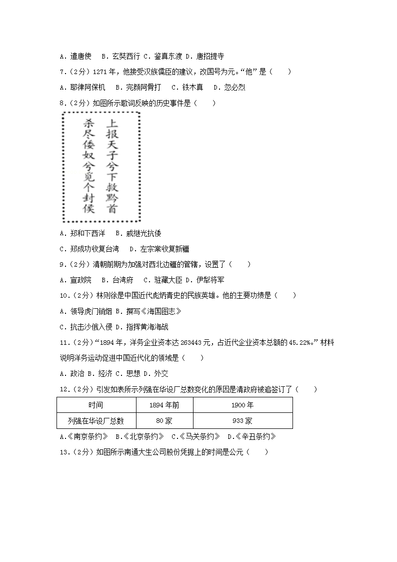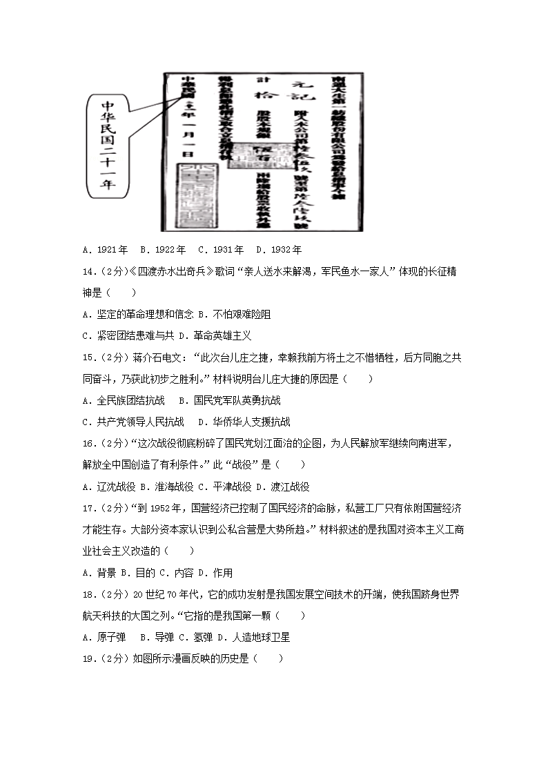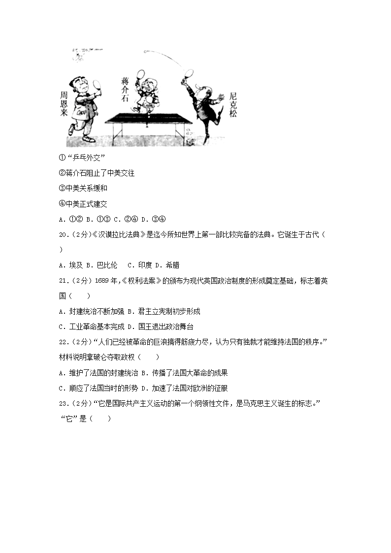 【文档名称】 2018年福建龙岩中考历史真题及答案(Word版).doc