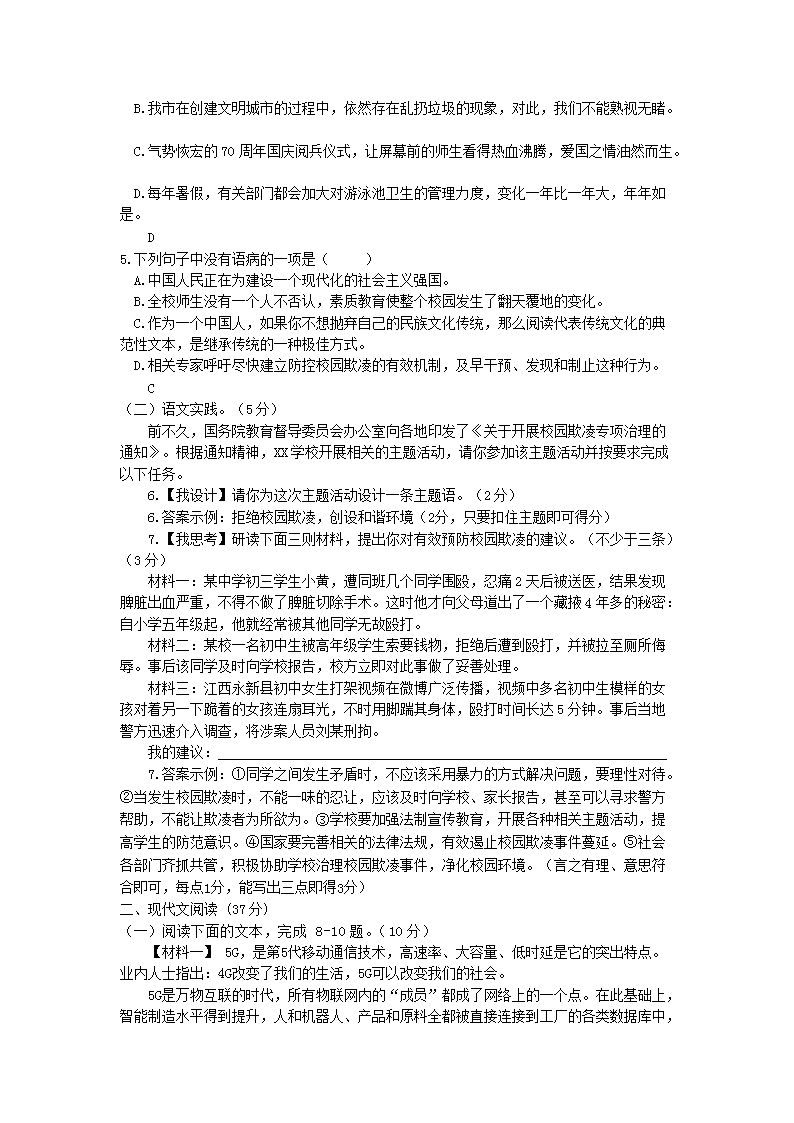【文档名称】 2020年四川省巴中市中考语文真题及答案(Word版).doc
