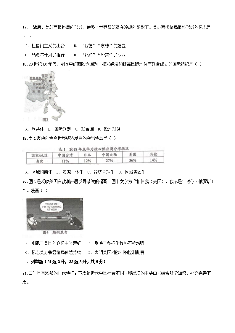 【文档名称】 2020年四川省阿坝州中考历史真题及答案(Word版).doc
