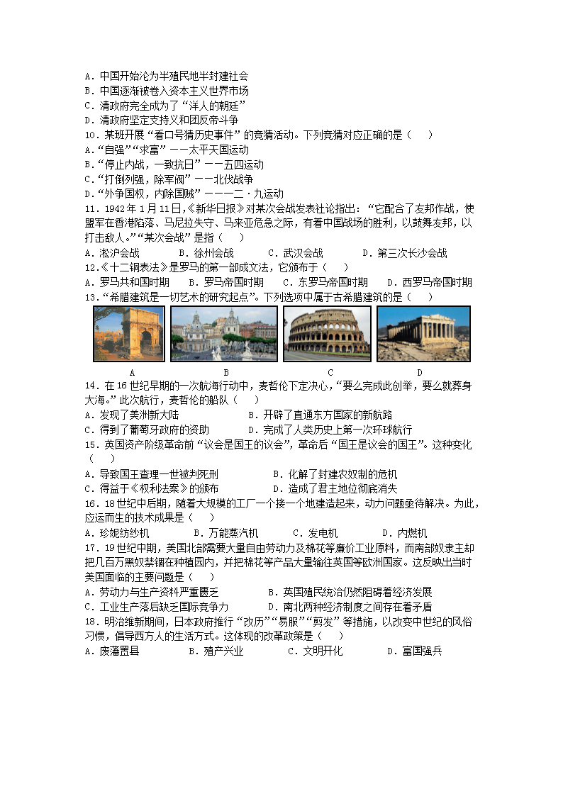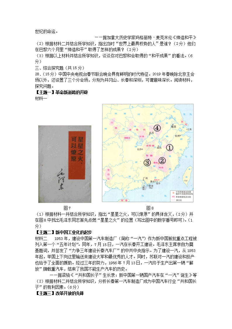【文档名称】 2019四川省成都市中考历史真题及答案(Word版).doc