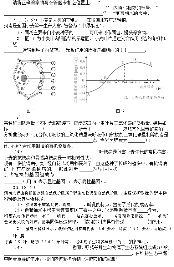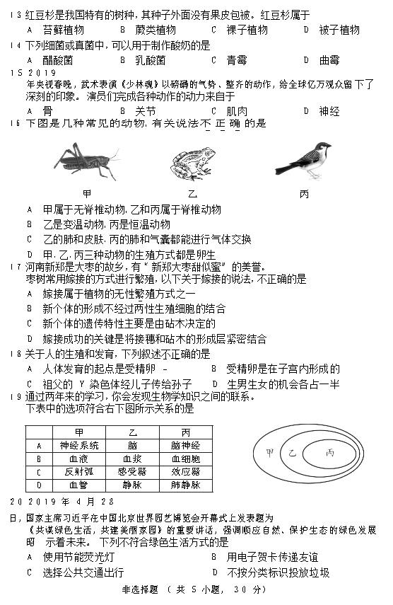 【文档名称】 2019年河南三门峡中考生物真题及答案(Word版).doc