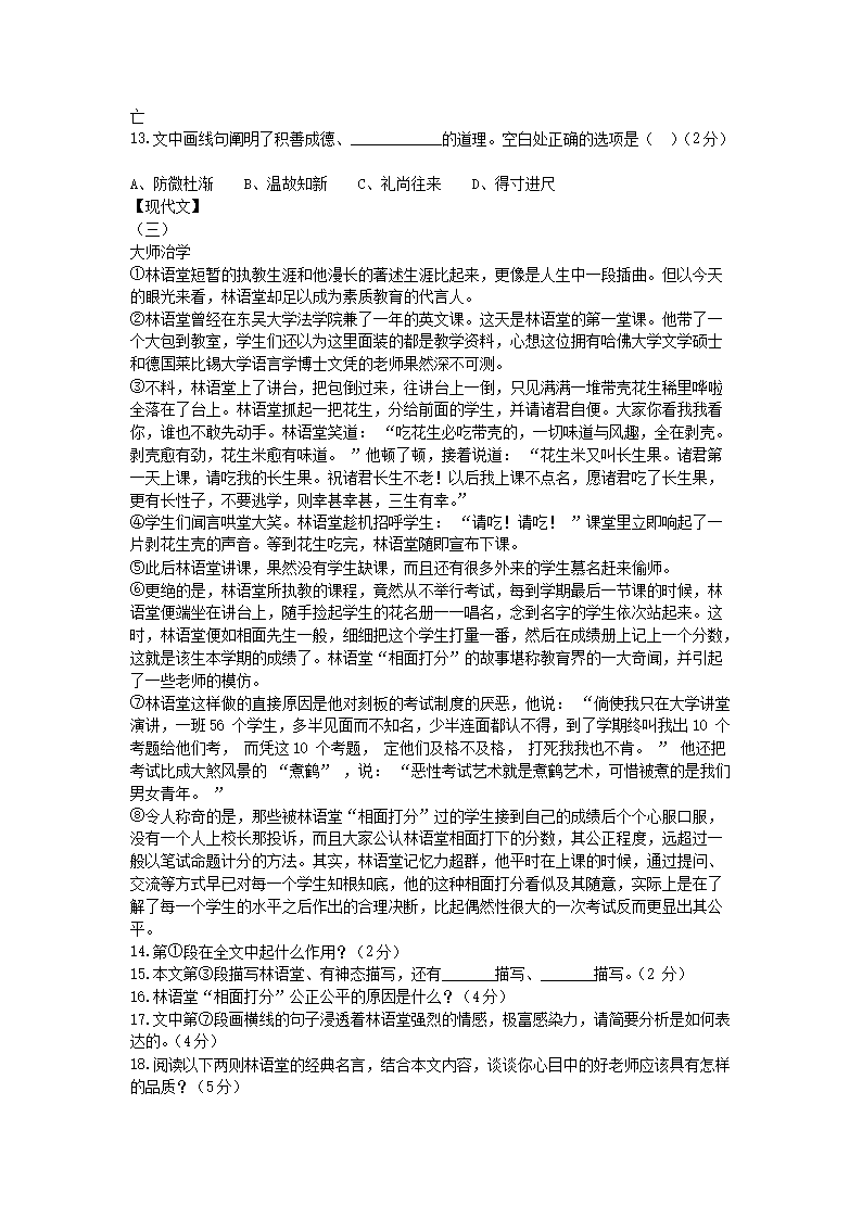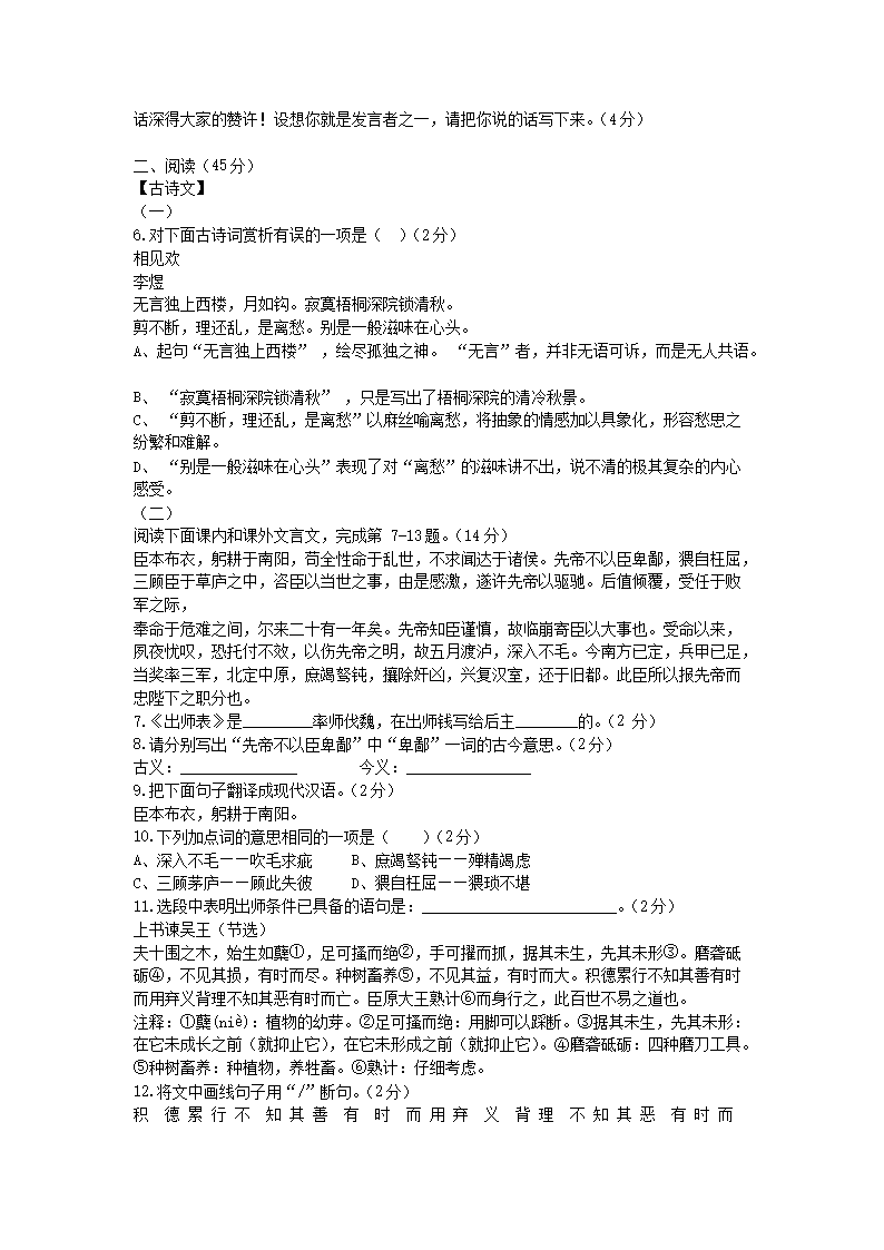 【文档名称】 2014年山西省朔州中考语文真题及答案(Word版).doc
