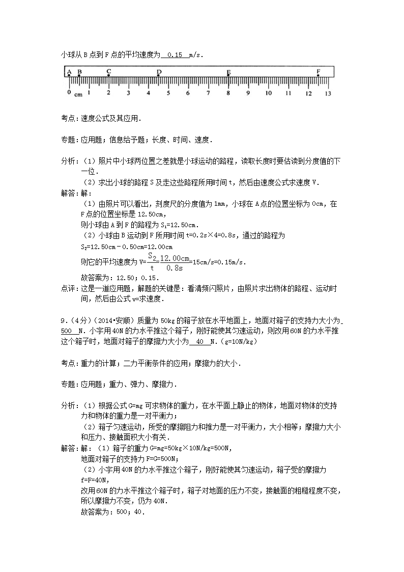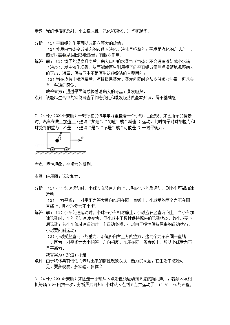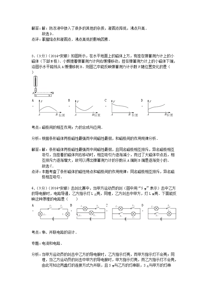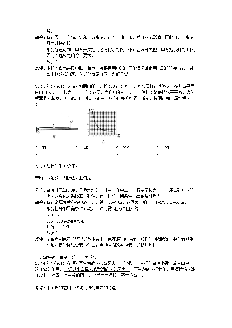 【文档名称】 2014年贵州安顺市中考物理真题及答案(Word版).doc