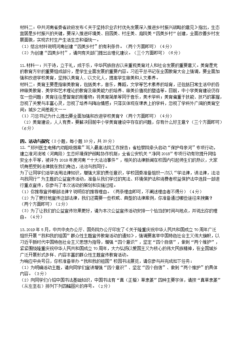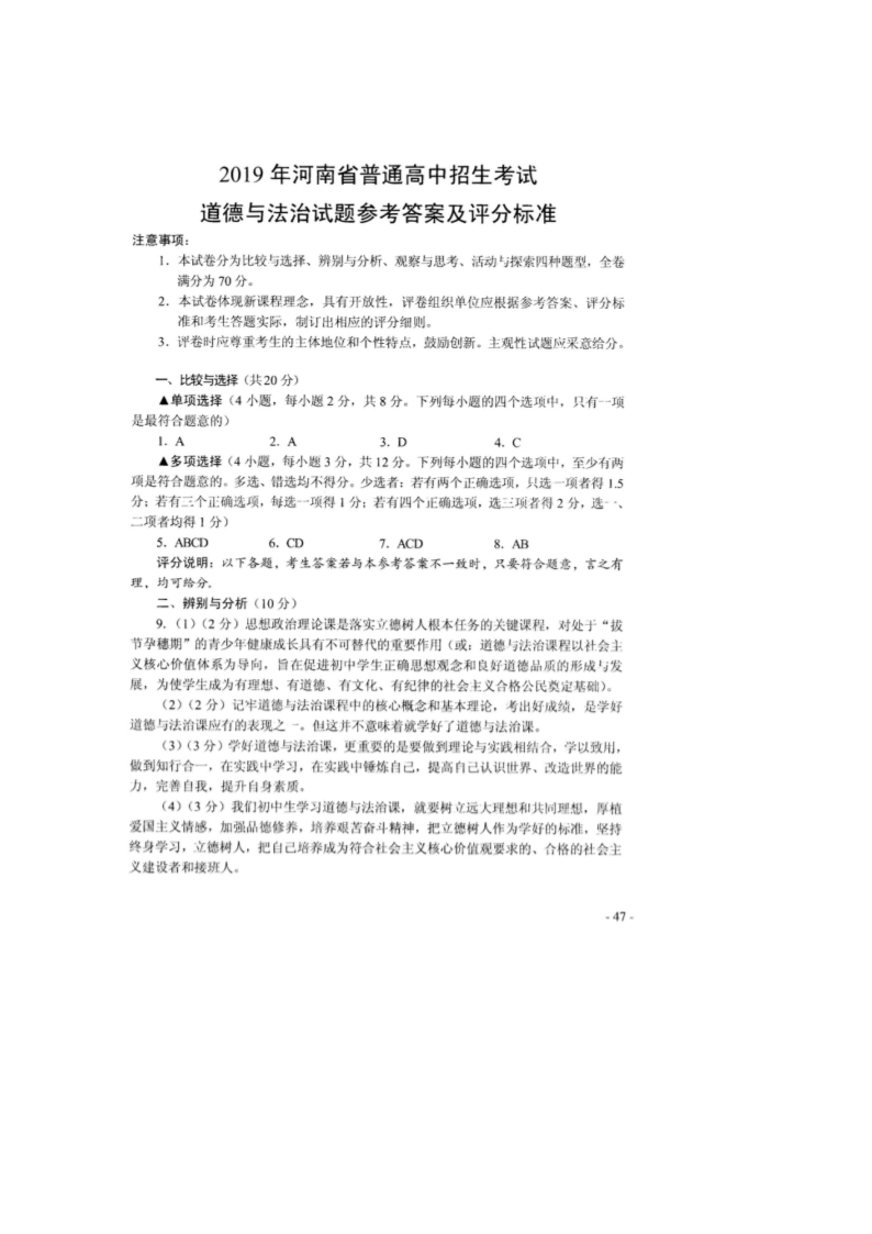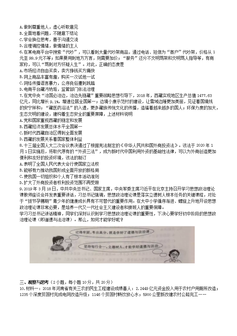 【文档名称】 2019年河南三门峡中考道德与法治真题及答案(Word版).doc