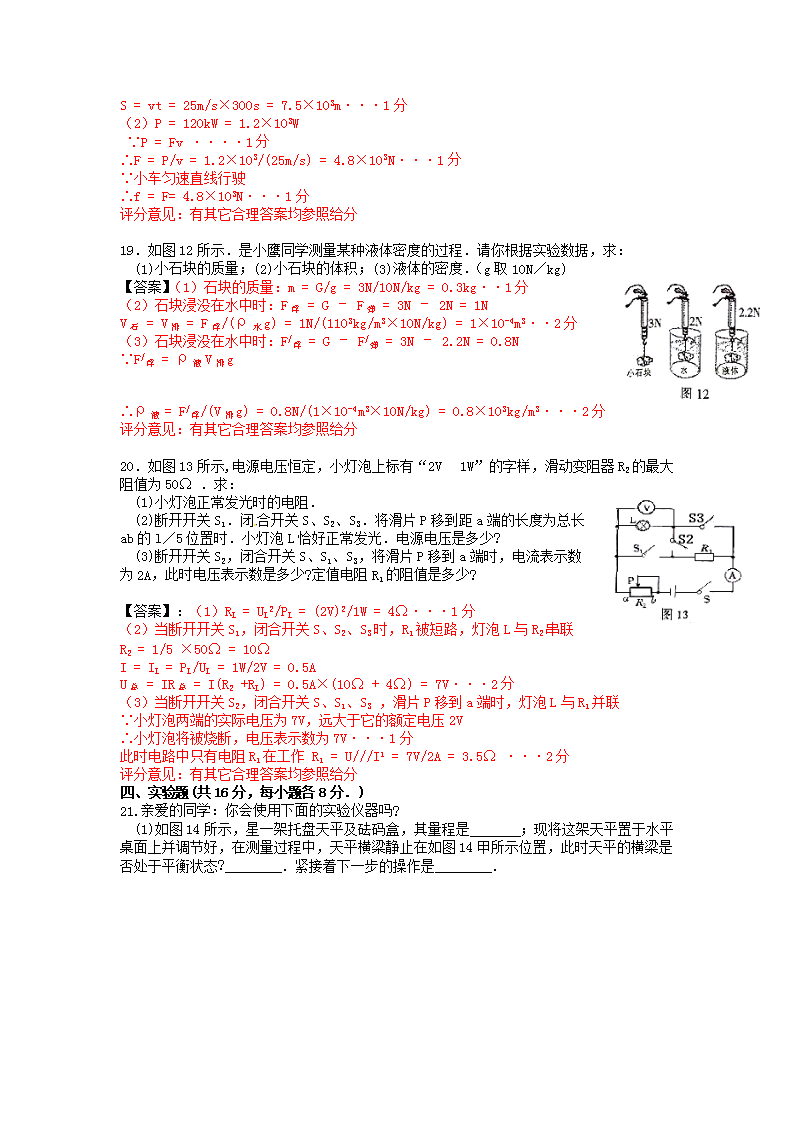 【文档名称】 2015年江西宜春中考物理真题及答案(Word版).doc