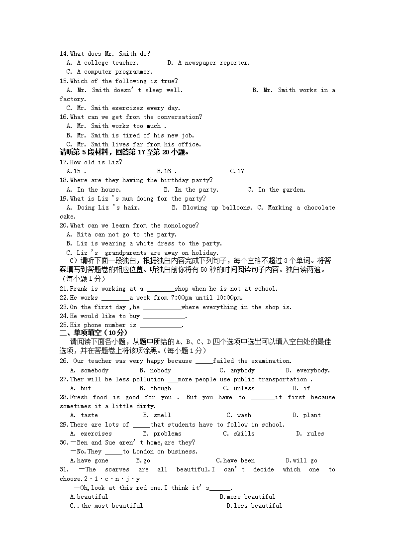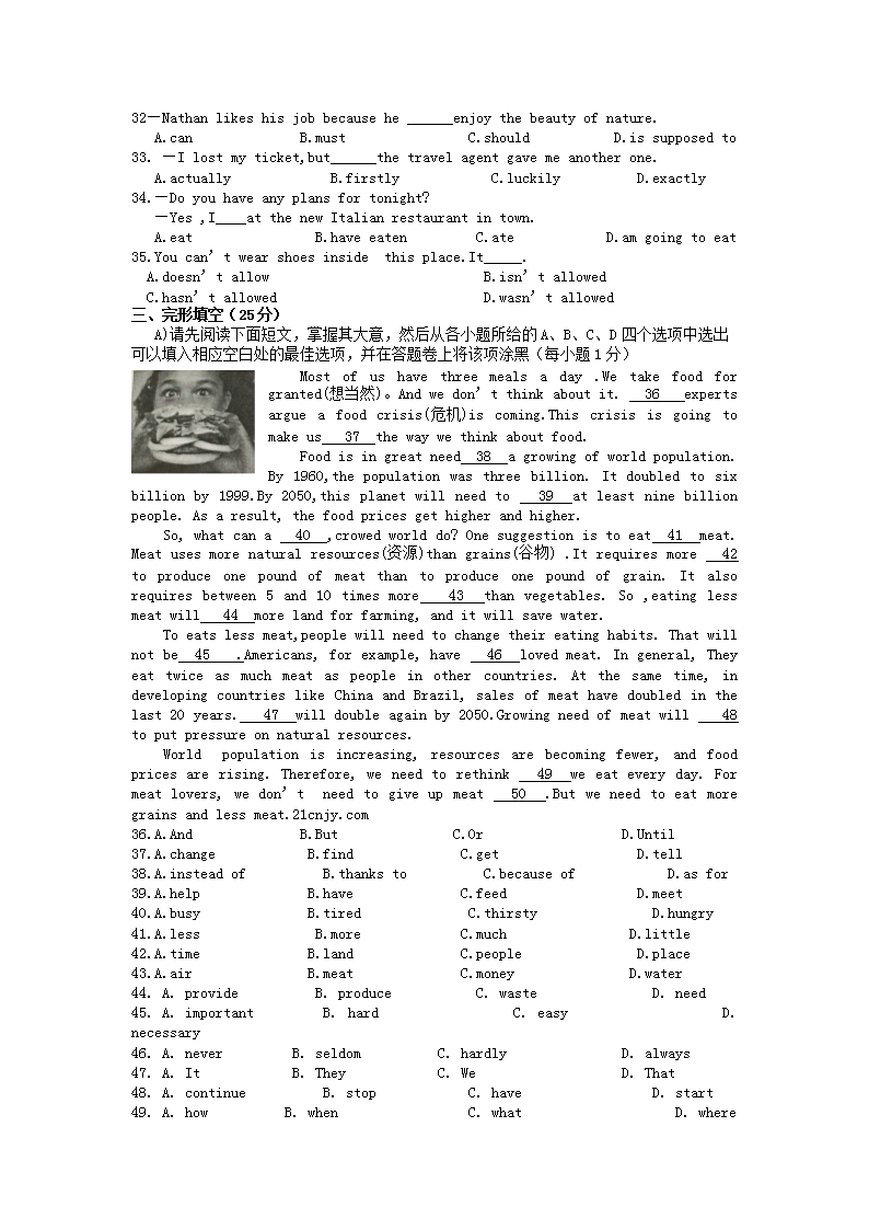 【文档名称】 2015年江西吉安中考英语真题及答案(Word版).doc