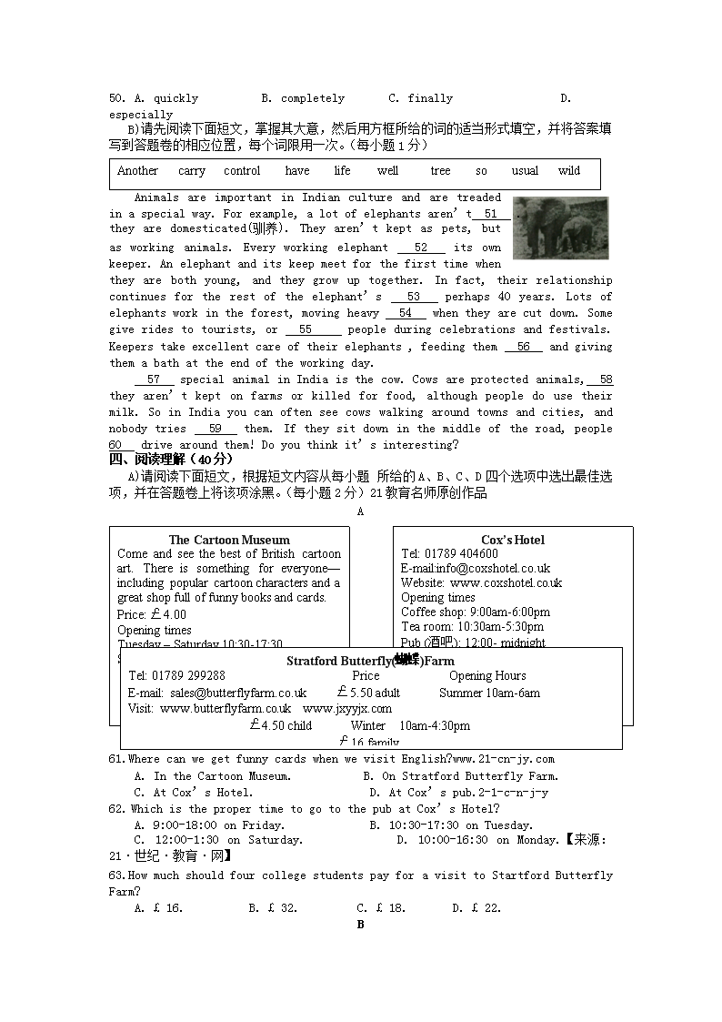 【文档名称】 2015年江西南昌中考英语真题及答案(Word版).doc