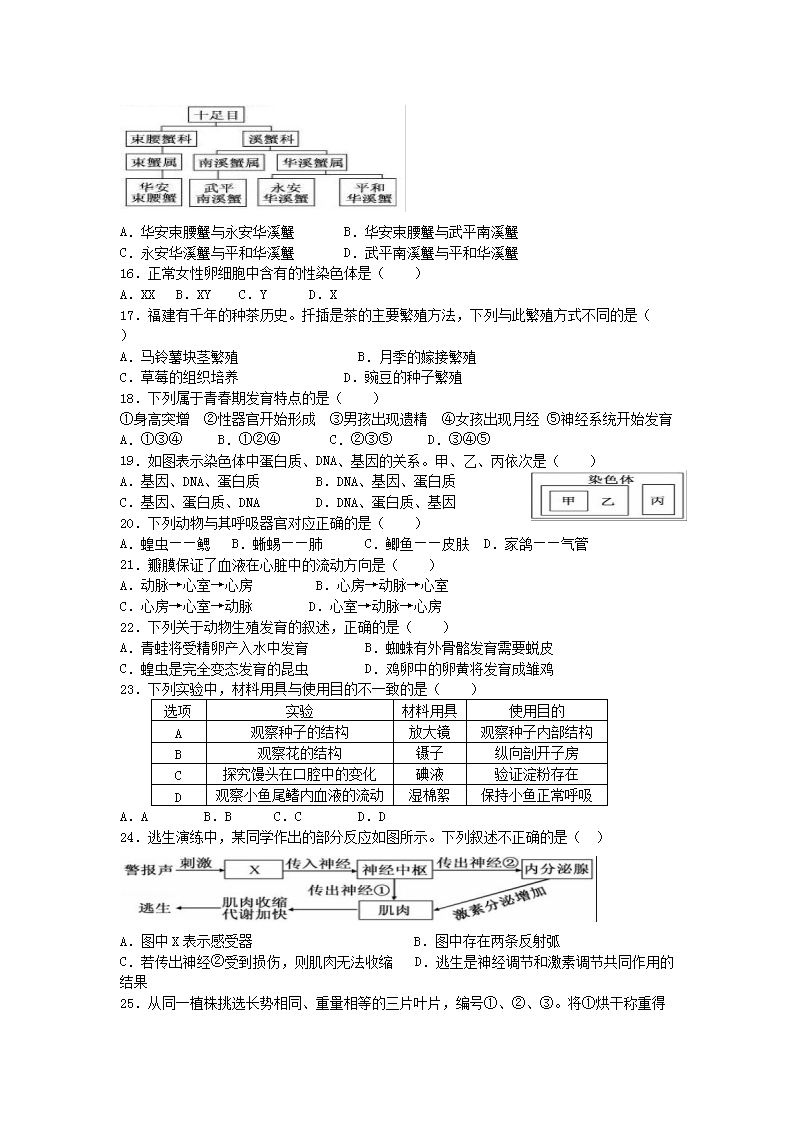 【文档名称】 2017年福建泉州中考生物真题及答案(Word版).doc