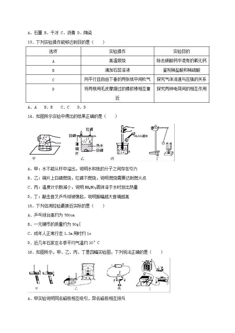 【文档名称】 2017年河北唐山中考理科综合真题及答案(Word版).doc