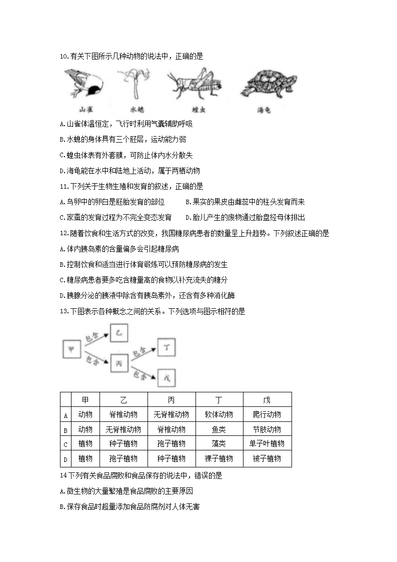 【文档名称】 2017年河北邢台中考生物真题及答案(Word版).doc