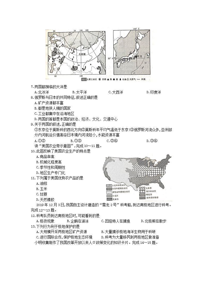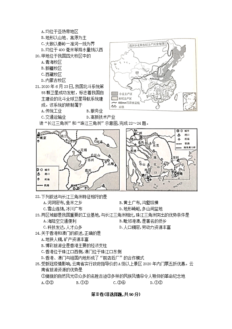 【文档名称】 2020云南怒江中考地理真题及答案(Word版).doc