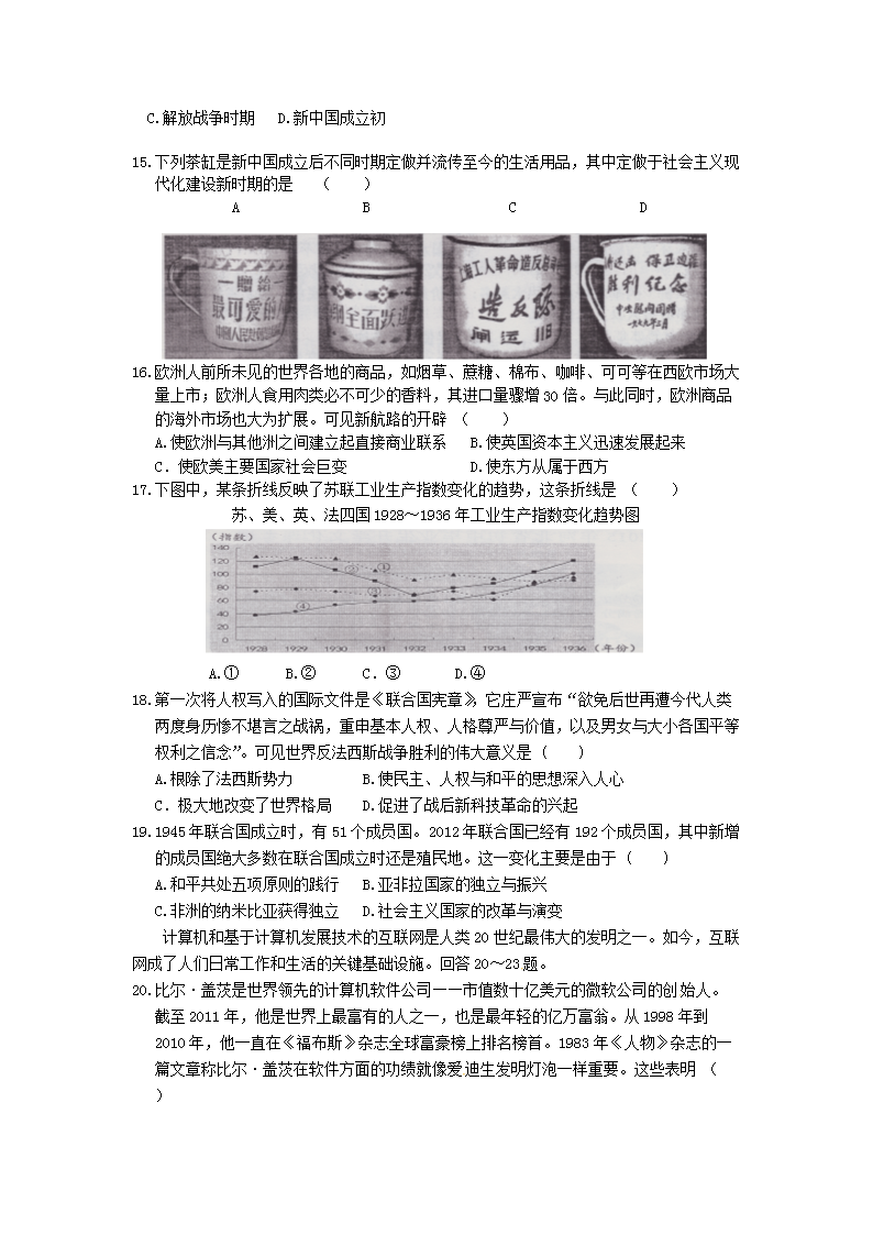 【文档名称】 2015年河北衡水中考文科综合真题及答案(Word版).doc