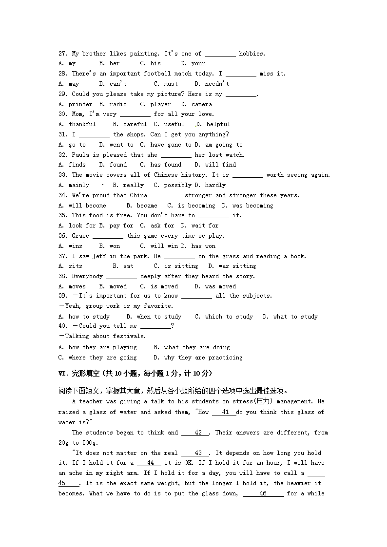 【文档名称】 2015年河北衡水中考英语真题及答案(Word版).doc