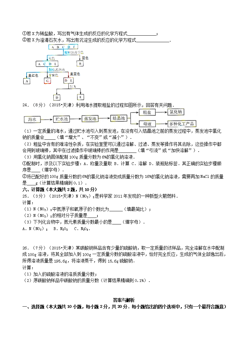 【文档名称】 2015天津武清中考化学真题及答案(Word版).doc
