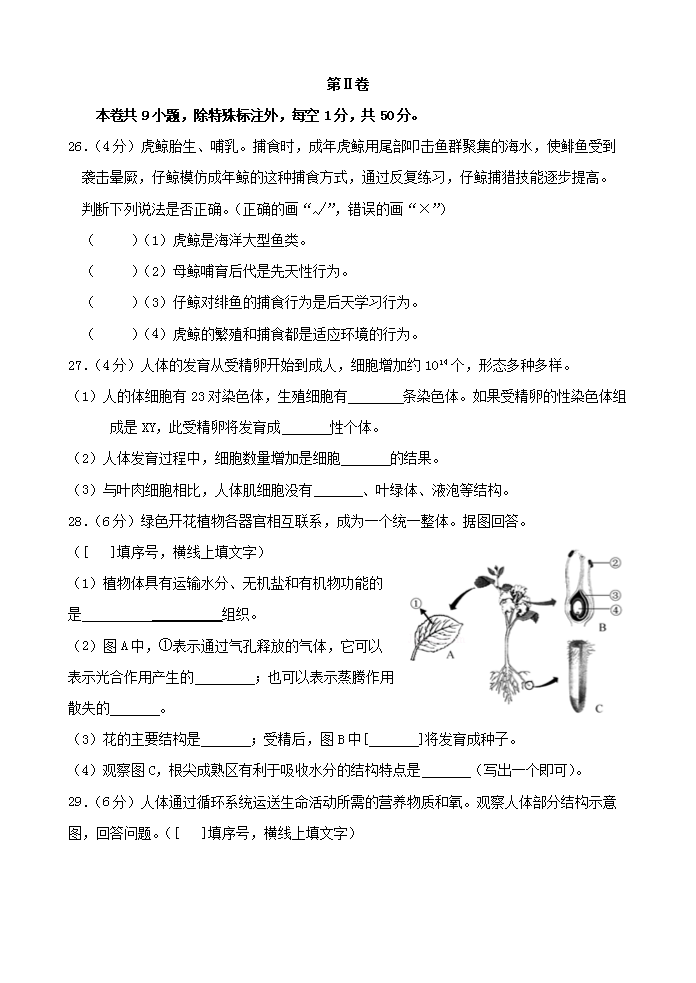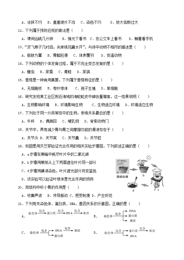 【文档名称】 2018年福建龙岩中考生物真题及答案(Word版).doc