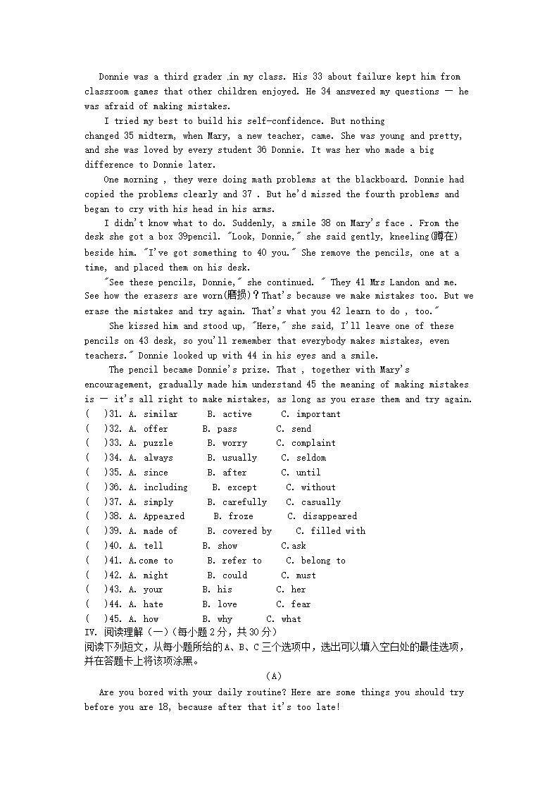 【文档预览】 无忧考网整理发布2014年山西省运城中考英语真题及答案(Word版),前五页预览如下: